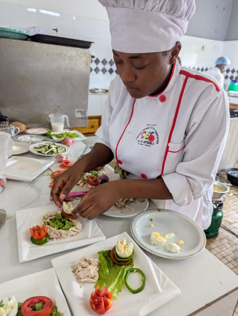Pendant les trois jours des évaluations preatiques, les apprenants se sont succédés aux différents postes afin que chacun à oa fin ait pu montrer son savoir dans les modules. Les parents présents xhaque jour que leurs enfants passaient en cuisine ont pu déguster les mets par eux concoctés et apprécier leur présentation devant le jury.